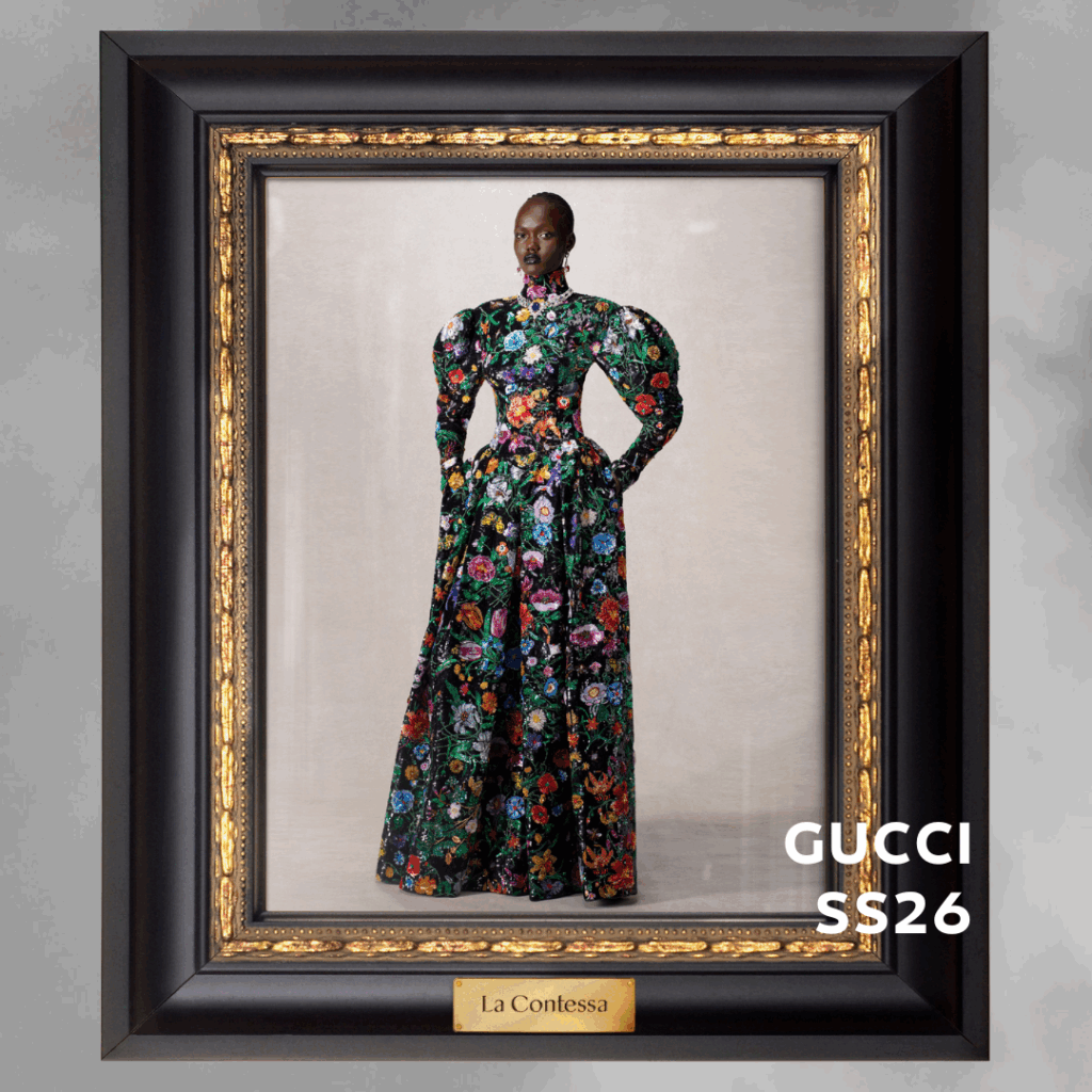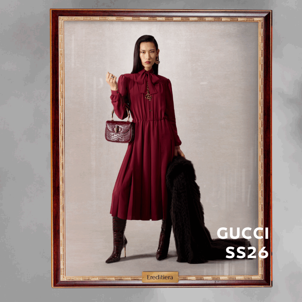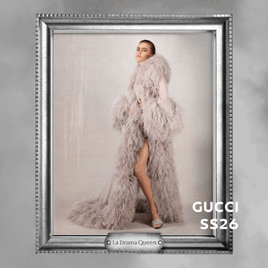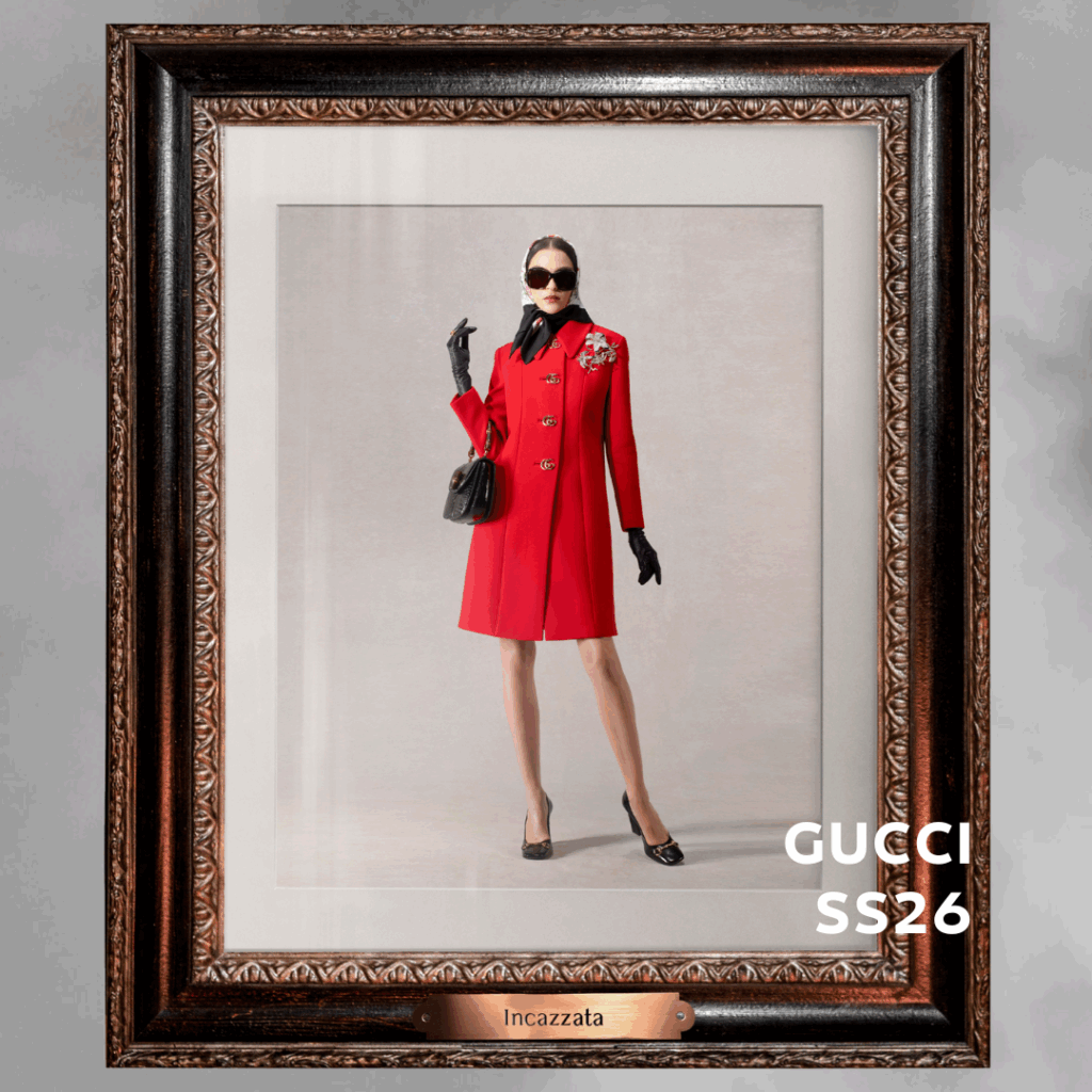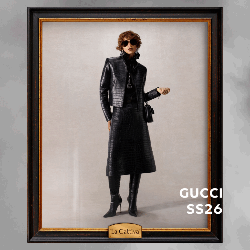 Mit „La Famiglia“ stellt Gucci eine exklusive Mini-Kollektion vor, die den Auftakt einer neuen Ära markieren könnte. Statt einer klassischen Runway-Show wurde ein Lookbook mit 46 sorgfältig kuratierten Bildern präsentiert. Jedes Outfit ist individuell betitelt und verweist auf italienische Archetypen – darunter die „Milanesa“ (die Mailänderin) oder der „Narcisista“ (der Narzisst). Die Kollektion bewegt sich zwischen Damen- und Herrenmode und zeigt bereits jetzt, wie Demna vertraute Codes von Gucci mit seiner unverwechselbaren Handschrift neu interpretiert.