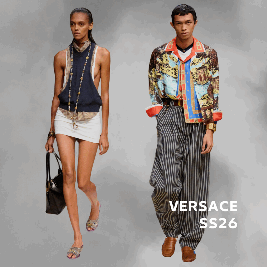 Im Mittelpunkt stand zunächst Versace, das nach dem Rückzug von Donatella Versace und der Übernahme durch die Prada Group unter neuer kreativer Leitung steht. Mit Dario Vitale, dem ehemaligen Kreativdirektor von Miu Miu, hat die Marke nun einen Designer an der Spitze, dessen humorvolle und farbenfrohe Handschrift schon lange in der Branche für Aufmerksamkeit sorgte. Sein erster Auftritt bei Versace war dementsprechend nicht nur ein Pflichttermin, sondern ein Moment, der die Frage aufwarf: Wie sieht das neue Versace aus?